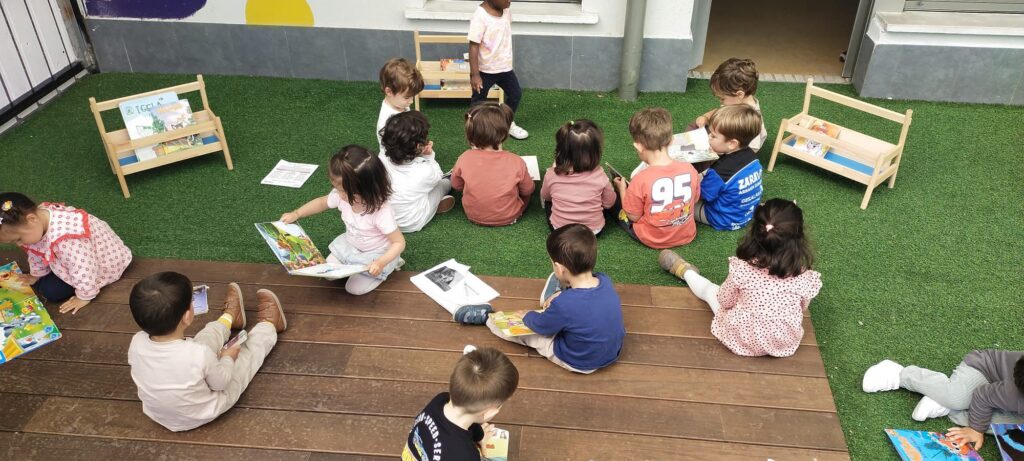 LH6 eta LH5eko ikasleek eskolako hainbat txokotan ipuinak kontatu dizkiete beste ikasleei, giro